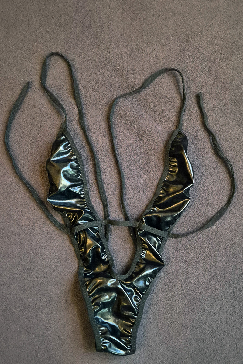 Dieser schwarze Lack-Body hat sich beim Shooting wie eine zweite Haut angefühlt – tief ausgeschnitten, eng anliegend, meine geilen Kurven betont. 🔥 Der Lack hat die Wärme meines Körpers aufgesogen, während ich für die Kamera posiert habe. Ja, obwohl es so verdammt wenig Stoff ist, habe ich nicht nur geschwitzt. Da mein Dom beim fotografieren natürlich keine Rücksicht auf mich genommen hat, sind leider auch ein paar Tröpfchen reingekommen, bevor ich auf Klo konnte…